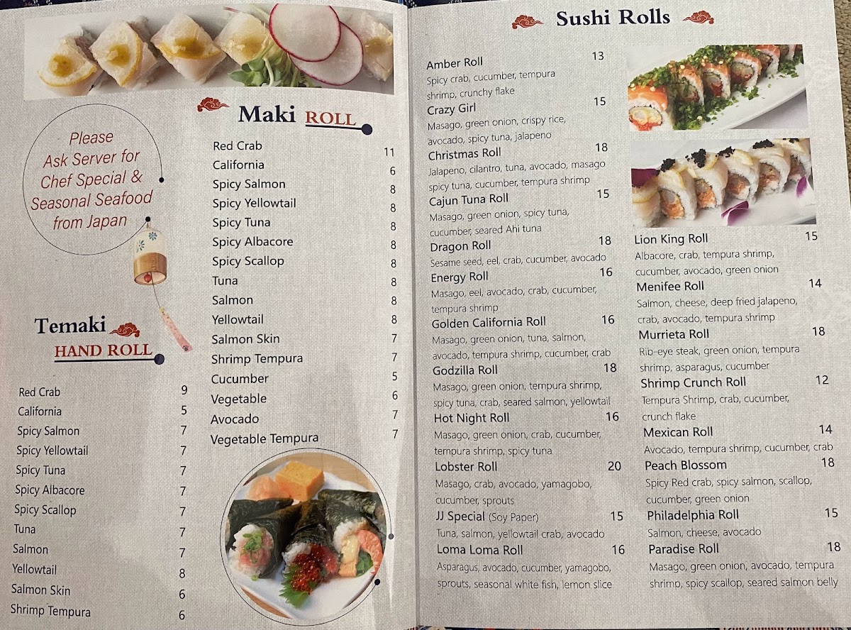 Welcome to JJ Sushi, located at 33040 Antelope Rd #104 in Murrieta, CA. This delightful sushi restaurant has won the hearts of locals with its innovative menu and exceptional service. One of the standout features is the extensive sushi roll selection, where each option is a burst of creativity. The Shrimp Crunch showcases tempura shrimp alongside crab and cucumber, while the Peach Blossom melds spicy red crab and scallop, creating a truly memorable flavor profile.